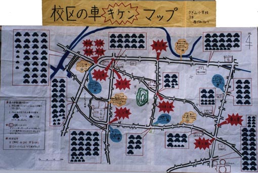 鷺山校区で、どれくらい車が走っているか、数えてみたくなったので始めました。その数が、事故の多い場所と関係があるか知りたくて地図を作りました。 車の数を数えるとき、暑くて、思ったより大変でした。でも、車の数をこつこつ地図に貼って、完成したときは、危険な場所とのつながりもわかって、がんばって良かったです。