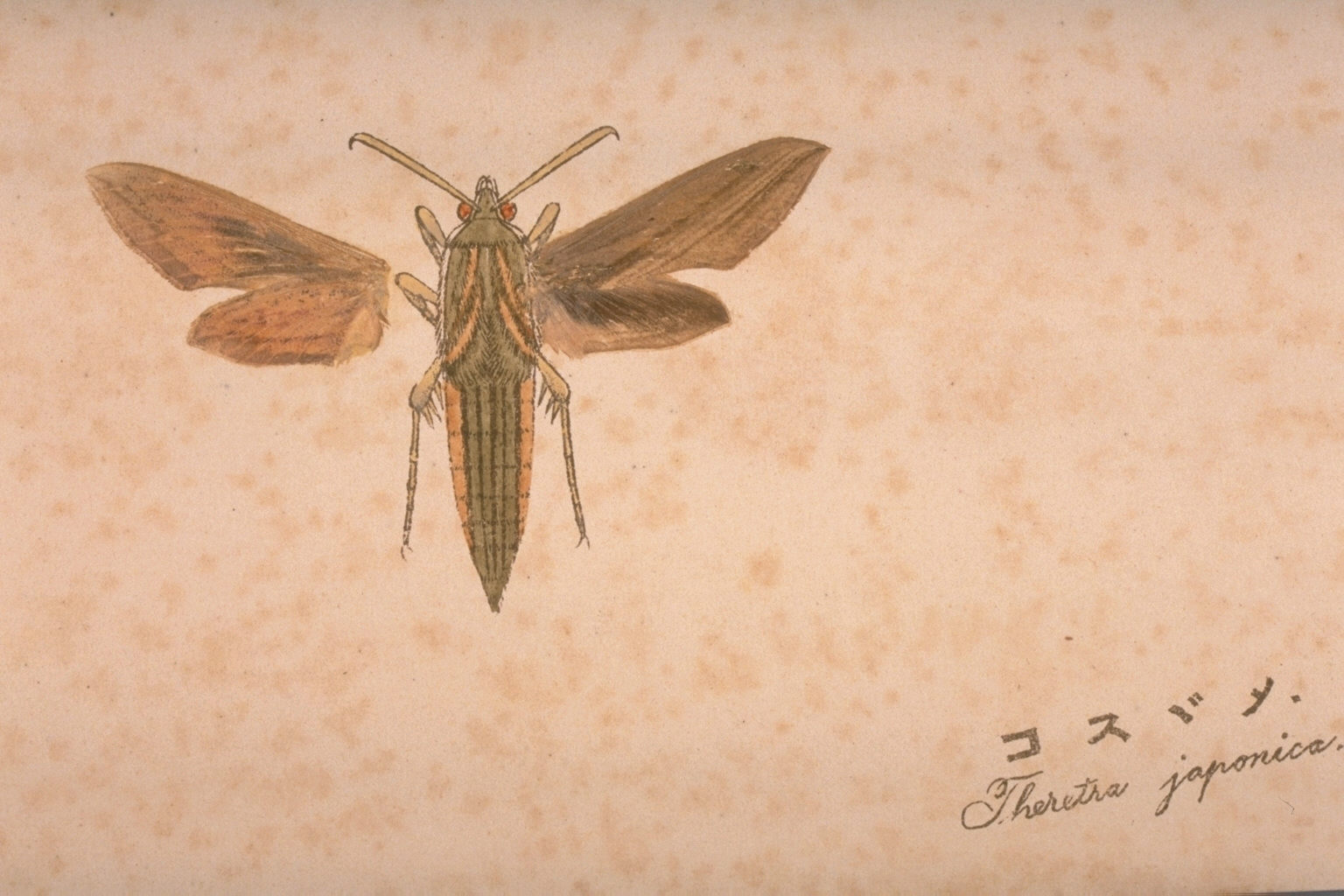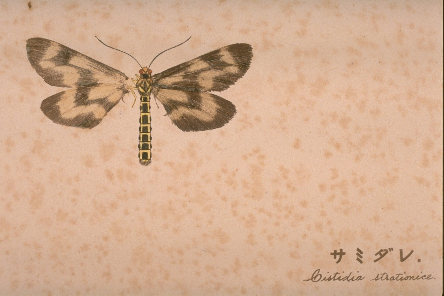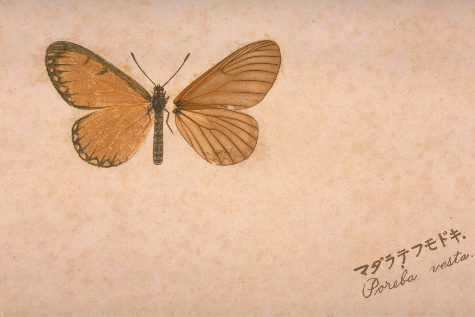 鱗粉転写法は蝶や蛾から糊を使って直接鱗粉を写し取り、胴体部分を描くという標本製作術。18世紀のフランスで実践されていた。国内では昆虫研究家名和靖が名和昆虫研究所で工芸部を設けて研究開発した。本書はその技法を用いて作成されており、鱗粉をそのまま写し取った標本は美術品に近く、貴重な資料である。