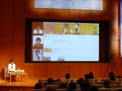 ぎふチャンの東千晴アナウンサーの司会進行で、中村さん、河邉さんお二人から新しい時代の文芸の形や創作活動について、貴重な写真も交えながらお話を伺いました。